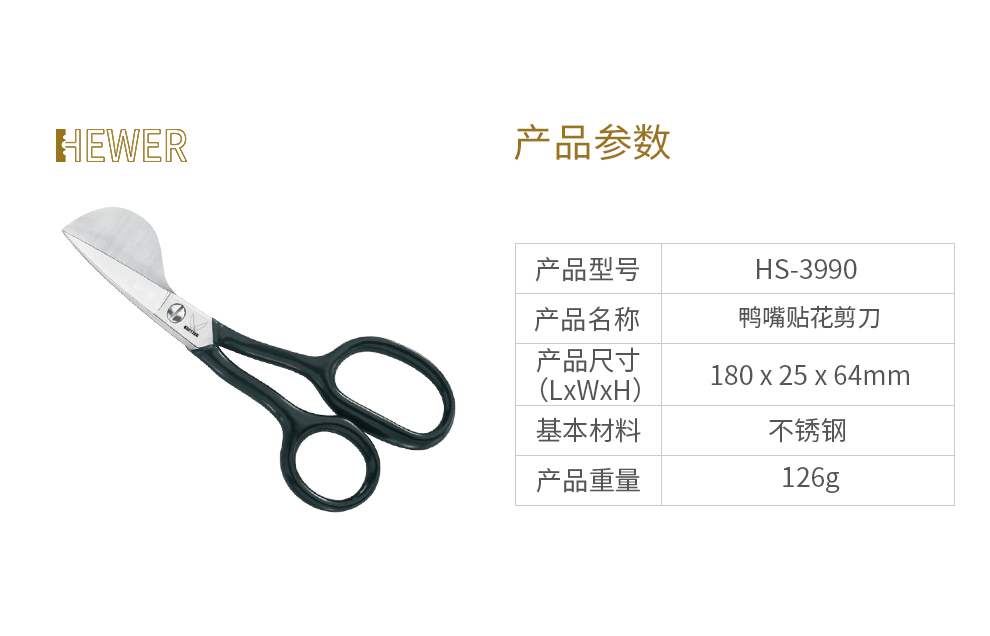 HEWER MultiCUT HS-3990鴨嘴貼花剪刀帶有寬鴨嘴刀片和舒適的握柄,是從繡花背面修剪貼花和穩(wěn)定器以及在接縫附近切割的理想工具。